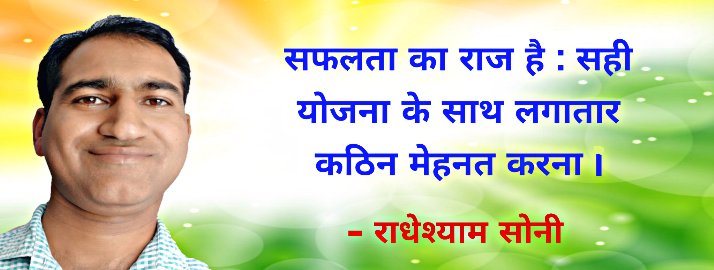 सभी विद्यार्थी अपनी जिंदगी का एक बड़ा लक्ष्य बनाकर तथा उसे हासिल कर एक सफल व कामयाब जीवन जीने का आनंद लें। साथ ही भारत का प्रत्येक नागरिक वित्तीय स्वतंत्रता प्राप्त कर पूरे परिवार को एक अच्छी व खुशहाल जिंदगी प्रदान करें।